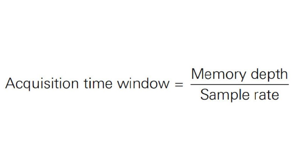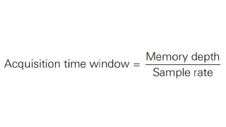 One obvious benefit of deep acquisition memory is the capture of a longer period of time. Deep memory helps in instances where the cause and effect may be separated by a significant time period, and plays a key role in viewing events that simply take longer to transpire. At the fastest sample rate, how much time will your oscilloscope capture? You can determine this using the following equation: