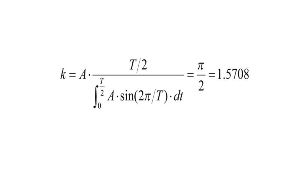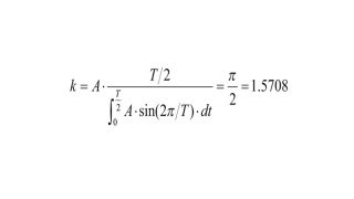 Fig.1 shows a rectified pulse as a sinusoidal signal sequence. There is a fixed relationship between this mean energy and the amplitude of the envelope. The integral of the first half period (denominator of the equation) is the mean energy, which is shown in Fig.1 as a rectangle. The formula for the factor k is the ratio between the amplitude A of the sinusoidal signal and the amplitude of the envelope.