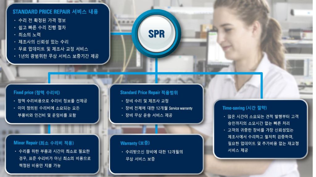 Rohde & Schwarz Korea의 Standard Price Repair는 단순한 수리를 넘어선 Total Care 시스템으로서 Rohde & Schwarz 독일 본사의 품질에 대한 자부심과 Rohde & Schwarz Korea의 고객 지향 정책을 구현하고 있습니다.